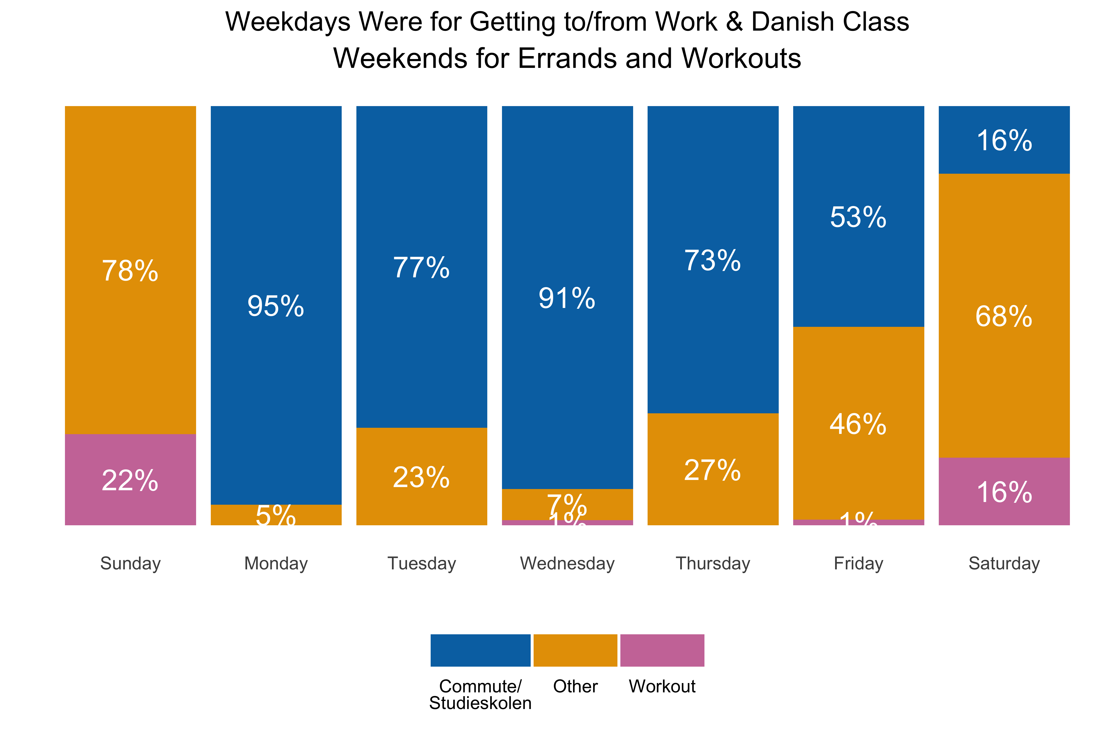 scale_fill_manual(values = c("#0072B2", "#E69F00", "#CC79A7"), labels = c("Commute/<br>Studieskolen", "Other", "Workout")) +