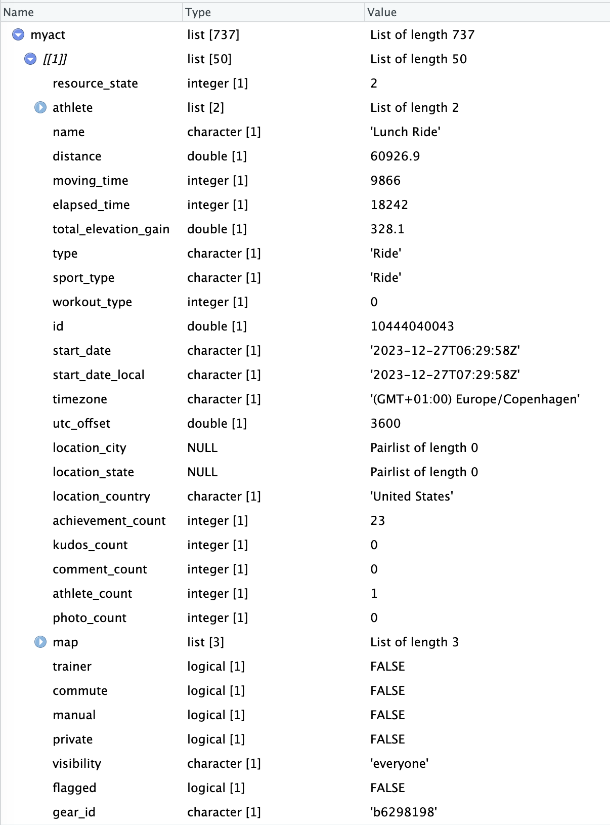 myact <- get_activity_list(stoken)Returns a list of activities requested